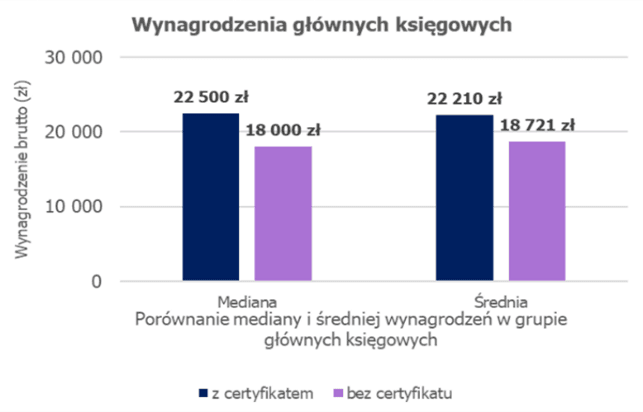- Wśród głównych księgowych z certyfikatem różnica w poziomie wynagrodzenia wynosi najwięcej, bo aż 25% (22 500 zł vs. 18 000 zł)